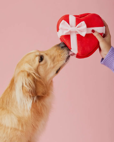 It'll be love at first bite with this heart-shaped plush toy, the perfect Valentine's Day gift for your best fur-iend