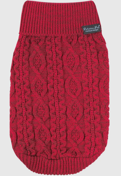 Red cable knit, this sweater for dogs is an ideal choice for dogs who want to stay warm and look fashionable during the colder months