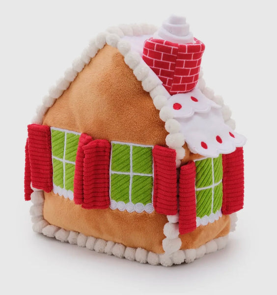 This sweet gingerbread house features hidden treat pockets as well as crinkle & squeak elements to stimulate all five senses!